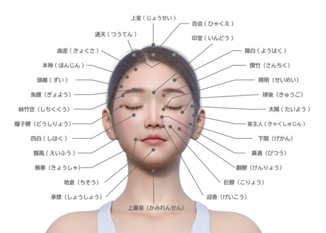 日々のセルフケアでも活用できる、顔のツボをご紹介します。指の腹で優しく、気持ちいいと感じる強さで押してみてください。